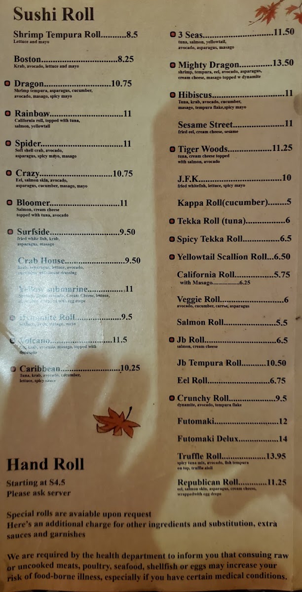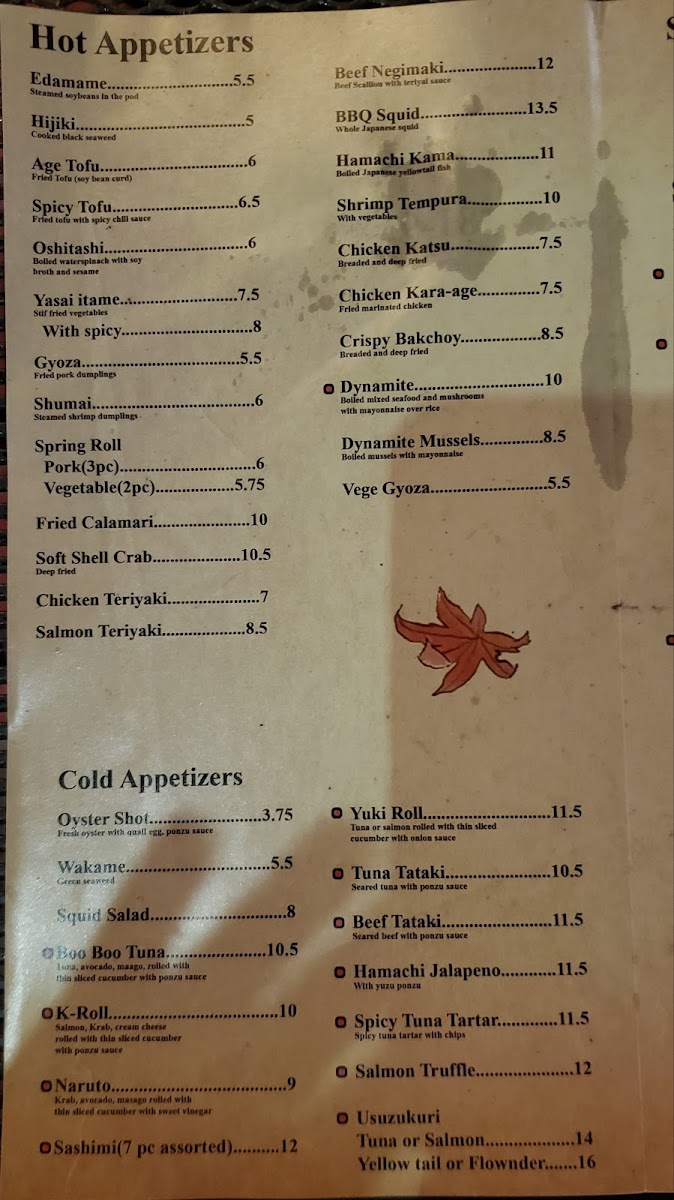 The menu shines with diverse offerings, from appetizers like steamed edamame and spicy aged tofu to heartier entrees, including Chicken Teriyaki and the delectable Salmon Teriyaki. Don't miss their standout house rolls, featuring the Shrimp Tempura Roll and the indulgent Crazy Roll, bursting with flavors and creativity.